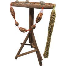 De Rens voedertafel is een ruime en stijlvolle voedertafel die door zijn achthoekige vorm direct opvalt in de tuin. Met een hoogte van 99 cm, een breedte van 62,5 cm en een diepte van 48 cm biedt deze tafel voldoende ruimte om allerlei lekkernijen voor vogels neer te leggen. Vervaardigd uit stevig vurenhout straalt deze voedertafel een natuurlijke en warme sfeer uit. Dankzij het opstaande randje blijft los strooivoer of zaad goed op zijn plek, zodat de vogels ongestoord kunnen genieten van hun maaltijd.
