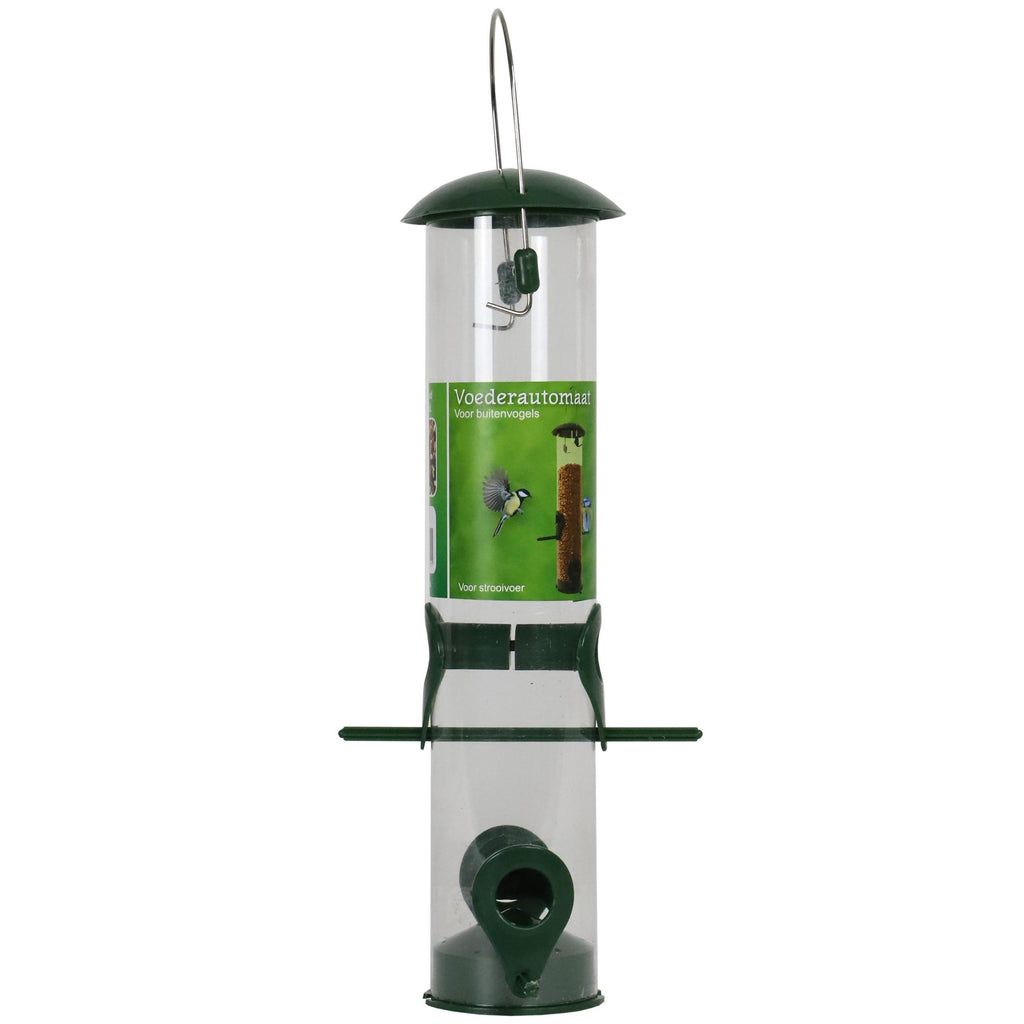 De voederautomaat is eenvoudig te vullen via de afneembare bovenzijde, zodat je hem snel weer kunt bijvullen met zaden, noten of andere vogeltraktaties. Dankzij het stevige metalen ophangsysteem hang je hem gemakkelijk op aan een boomtak, schutting of haak – waar jij maar wilt.