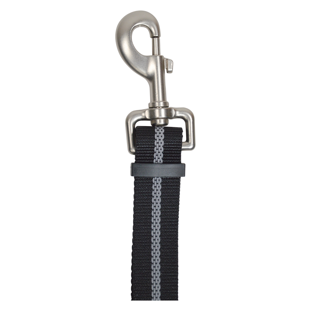 De reflecterende strip zorgt voor goede zichtbaarheid in het donker, terwijl de roestvrijstalen musketonhaak en ringen garant staan voor duurzaamheid en veiligheid.