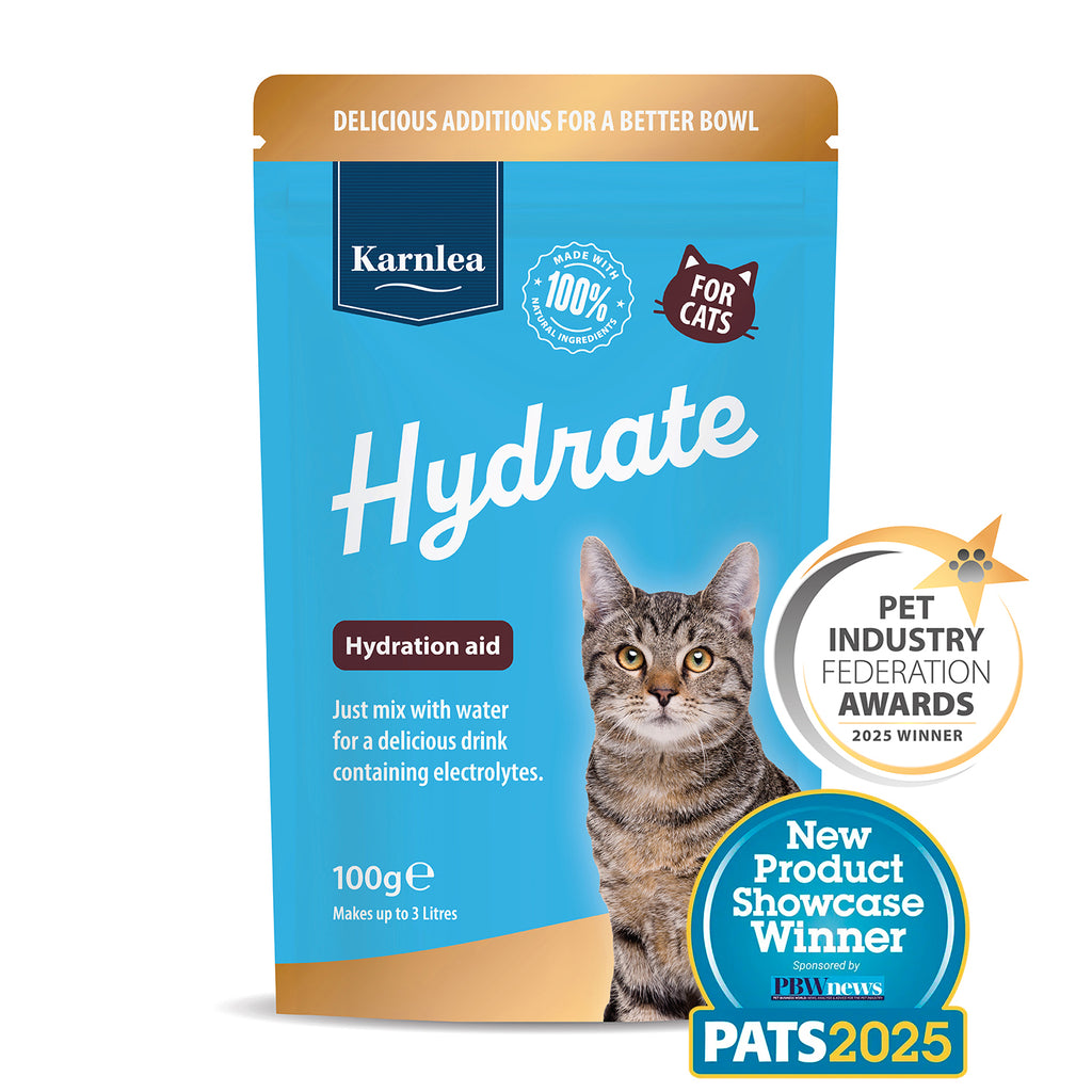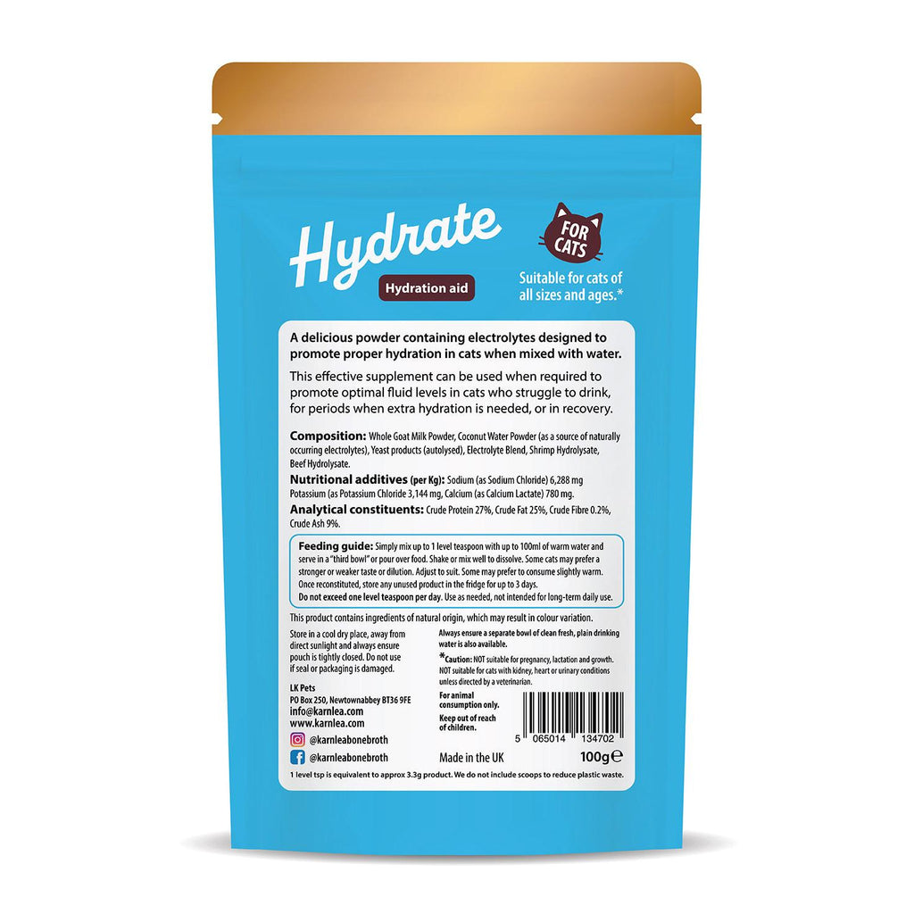 Hydrate – Hydratatiehulpmiddel voor katten – Een smakelijk poeder met elektrolyten, speciaal ontwikkeld om de vochtbalans van katten te bevorderen wanneer het met water wordt gemengd. Dit effectieve supplement kan worden gebruikt om de vochtbalans te optimaliseren bij katten die moeite hebben met drinken, tijdens periodes van extra hydratatie of tijdens herstel.