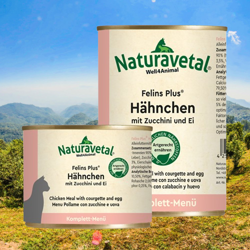 Zoals altijd bij Naturavetal® geldt de belofte dat de Felins Plus® compleet menu’s gegarandeerd vrij zijn van smaakversterkers, conserveringsmiddelen en minderwaardige bijproducten zoals pluimveemeel, klauwen of hoorn.
