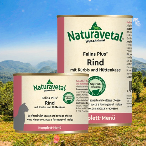 Zoals altijd bij Naturavetal® geldt de belofte dat de Felins Plus® compleet menu’s gegarandeerd vrij zijn van smaakversterkers, conserveringsmiddelen en minderwaardige bijproducten zoals pluimveemeel, klauwen of hoorn.