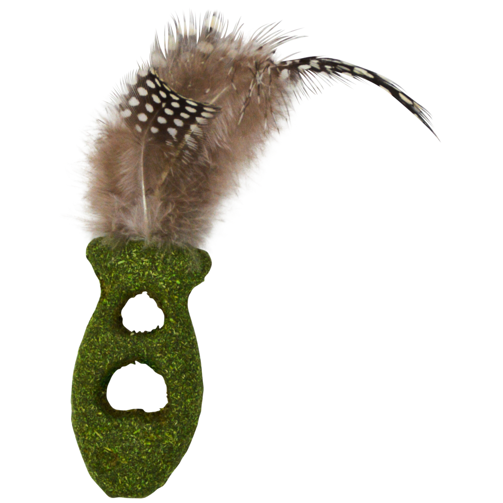 De natuurlijke geur van kattenkruid (catnip) maakt dit speeltje extra aantrekkelijk, terwijl de hartjesgaten en wiebelende veren bij elke tik of sprong zorgen voor een onweerstaanbare uitdaging.