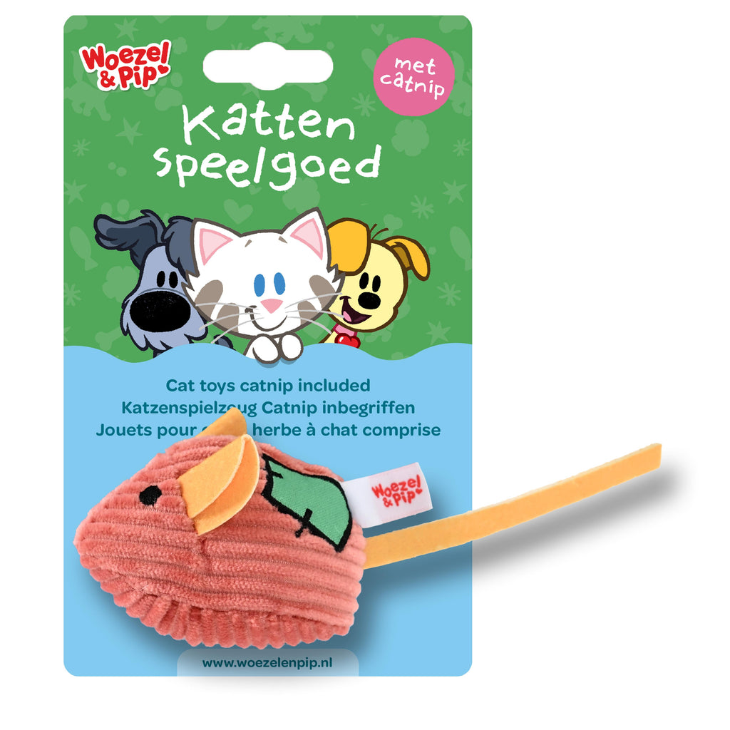 Kattenspeelgoed speeltjes Woezel en Pip Muis+Patch corduroy+catnip+bel rood 8 cm