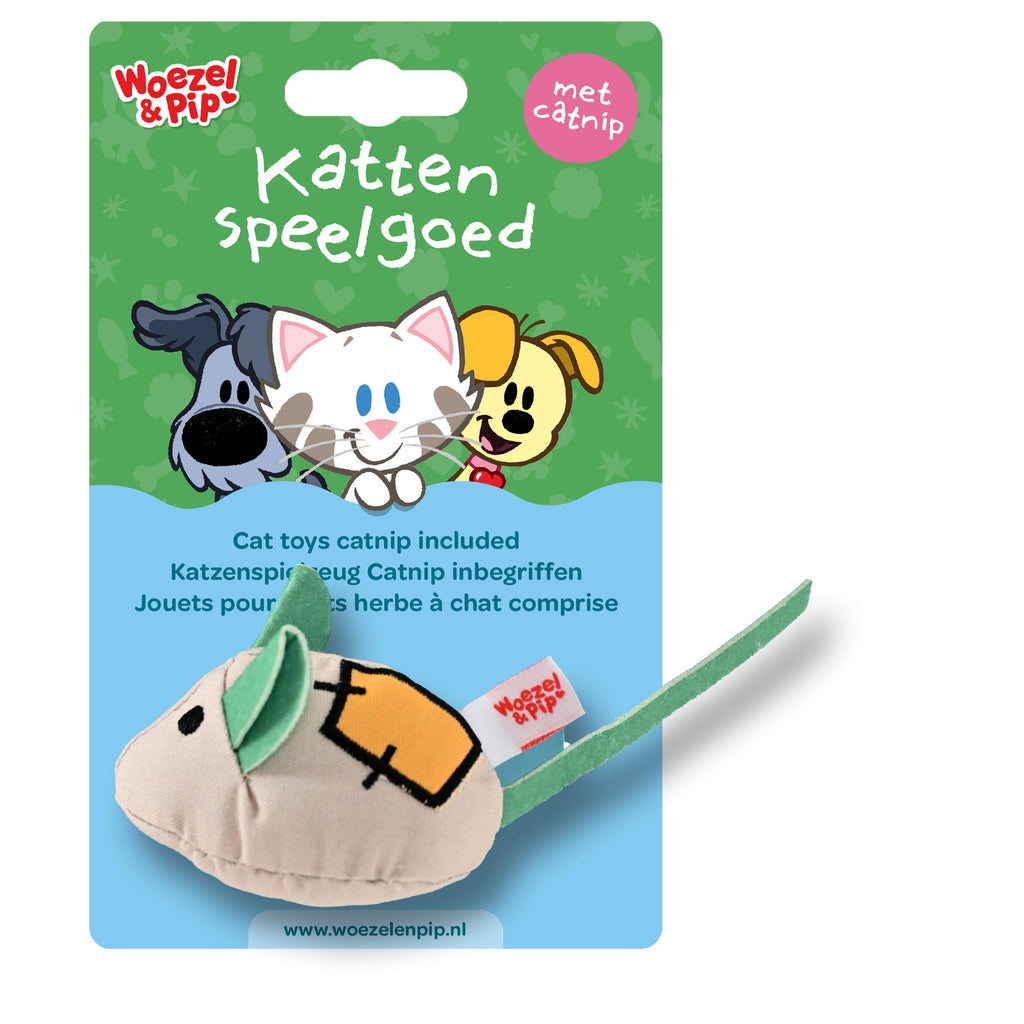 Kattenspeelgoed speeltjes Woezel en Pip Muis+Patch canvas+catnip+bel wit 8 cm