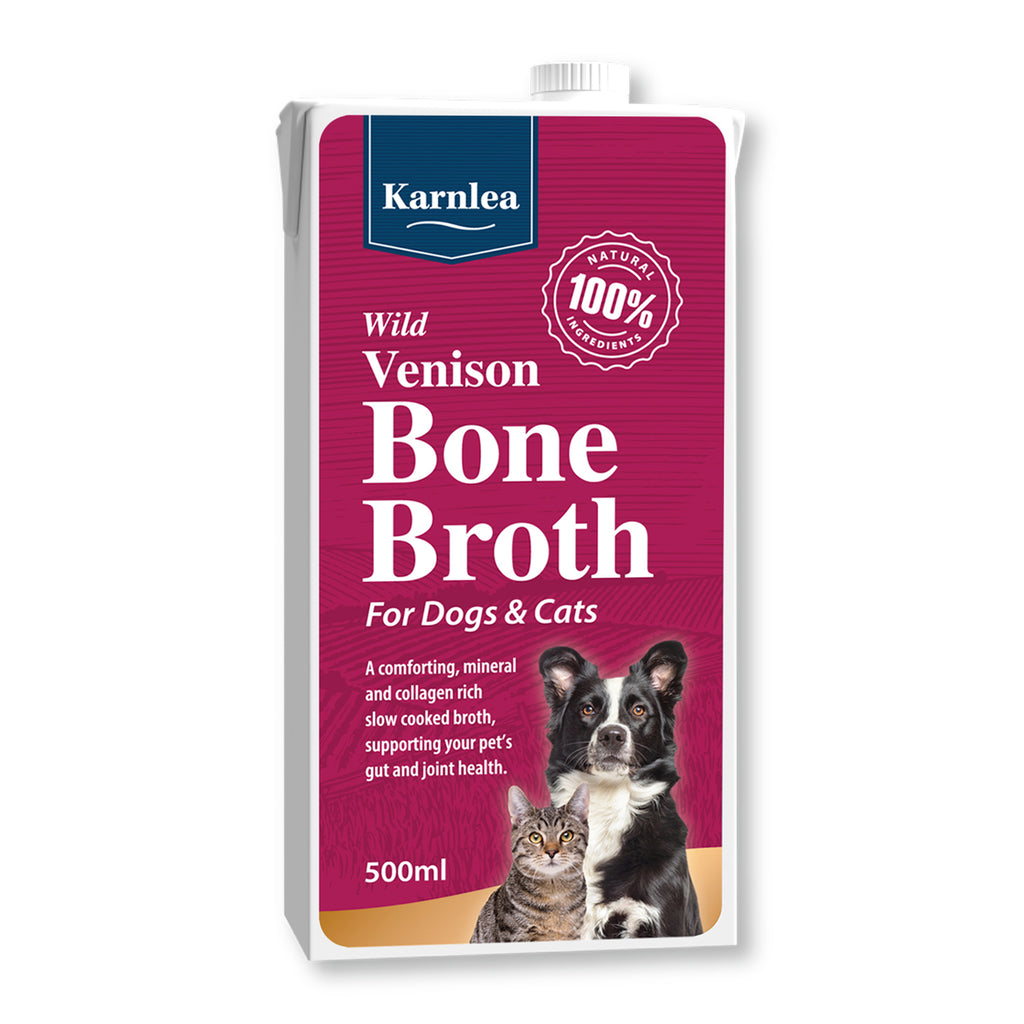 Wild Venison Bone Broth ~ De eerste 100% natuurlijke, voorraadvriendelijke vloeibare hertenbouillon voor honden en katten in het Verenigd Koninkrijk.